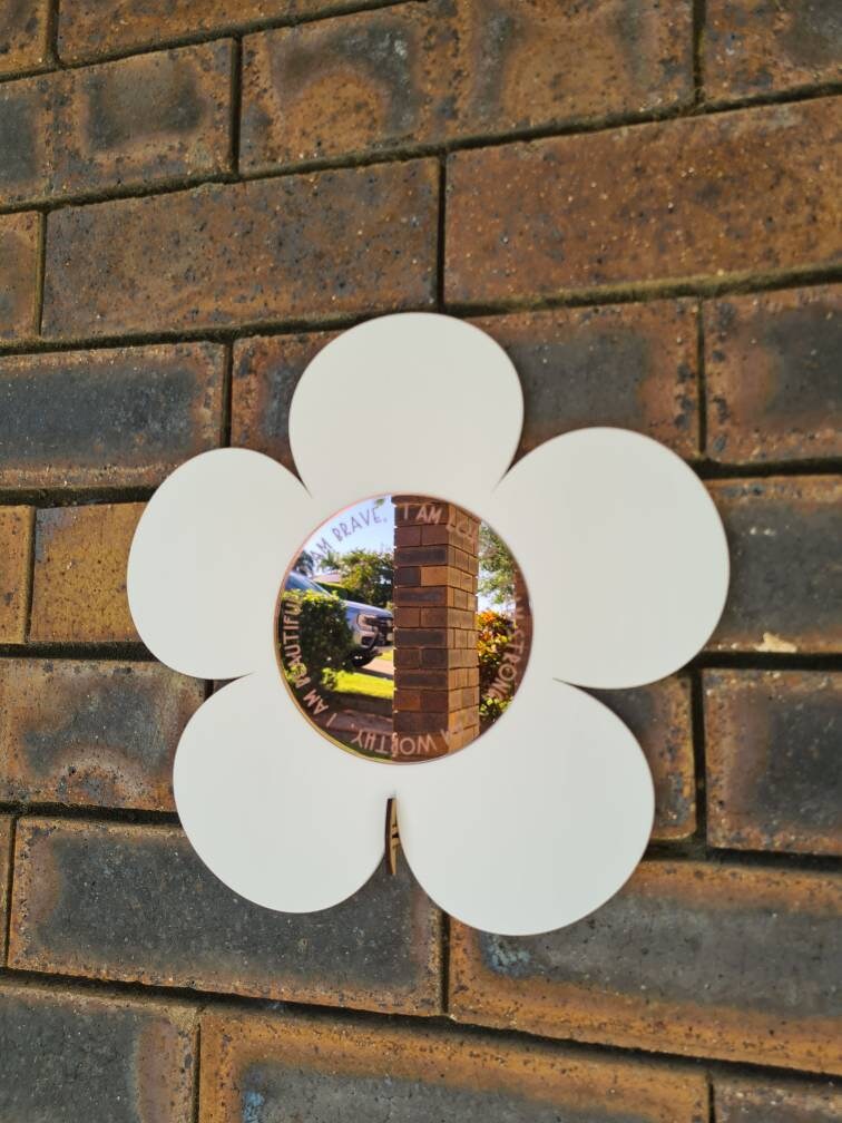 Affirmation mirror, rose gold and white acrylic perfect for you little ones bedroom or nursery. Simply use 3m velcro strips to install. Size is approx 30x30cm