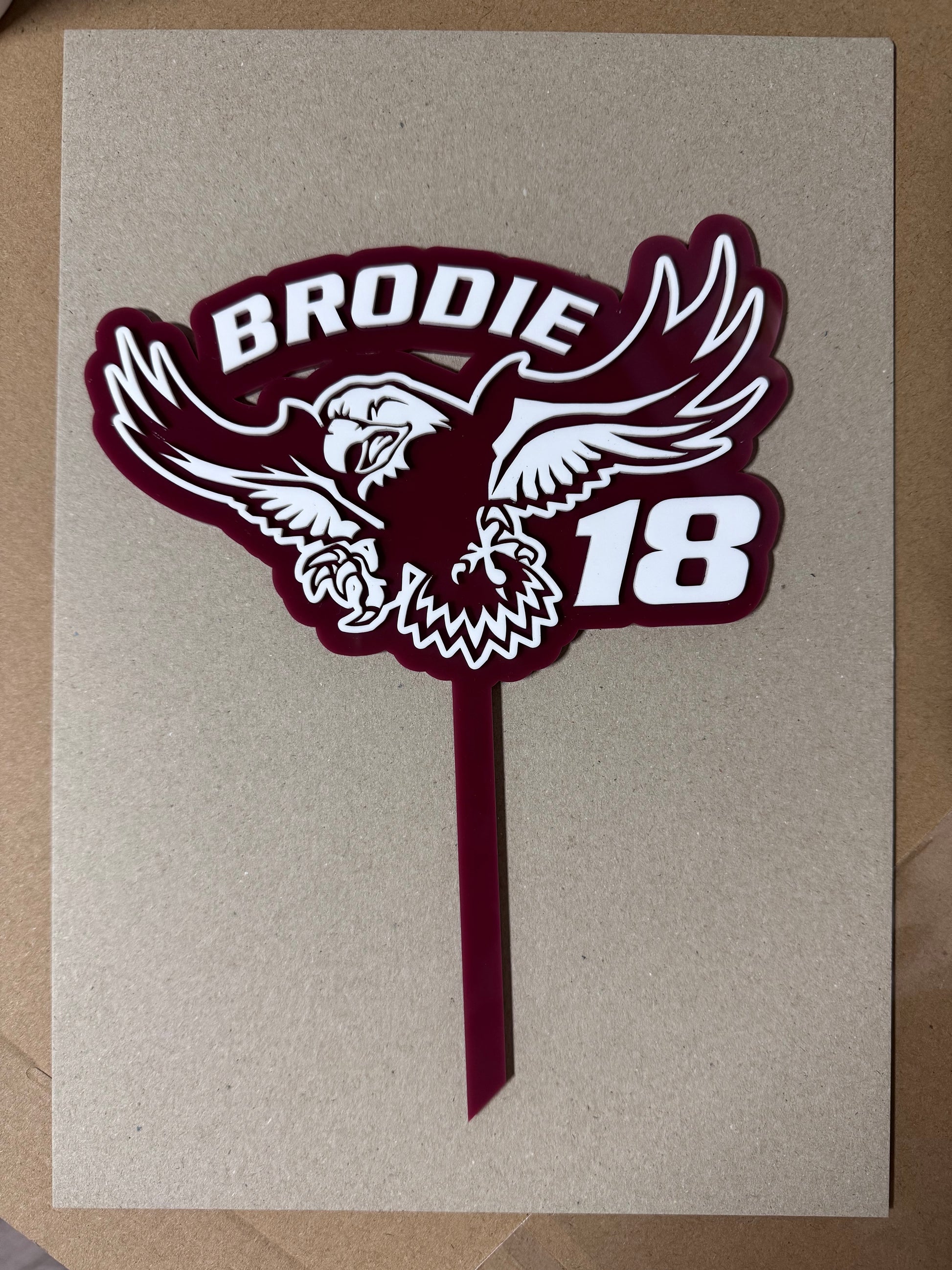 Layered acrylic cake toppers available in customisable designs and in many colours! Perfect to brighter any cake! Also available in single layer.
