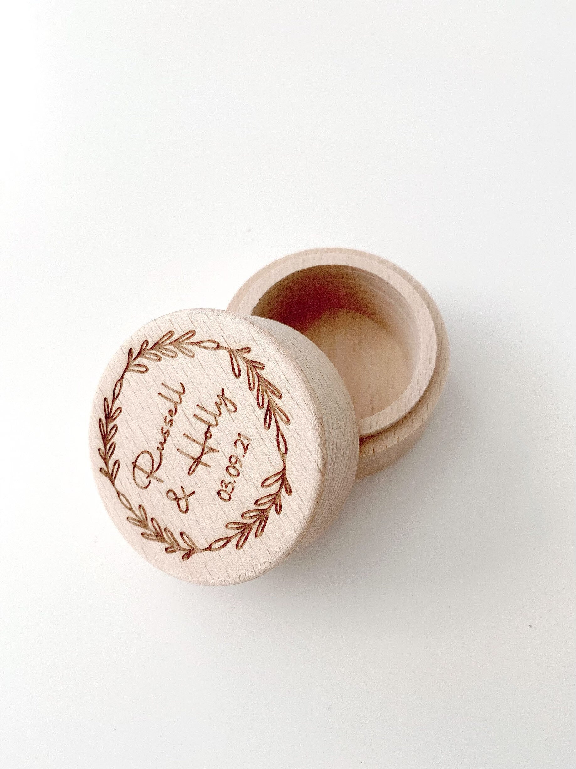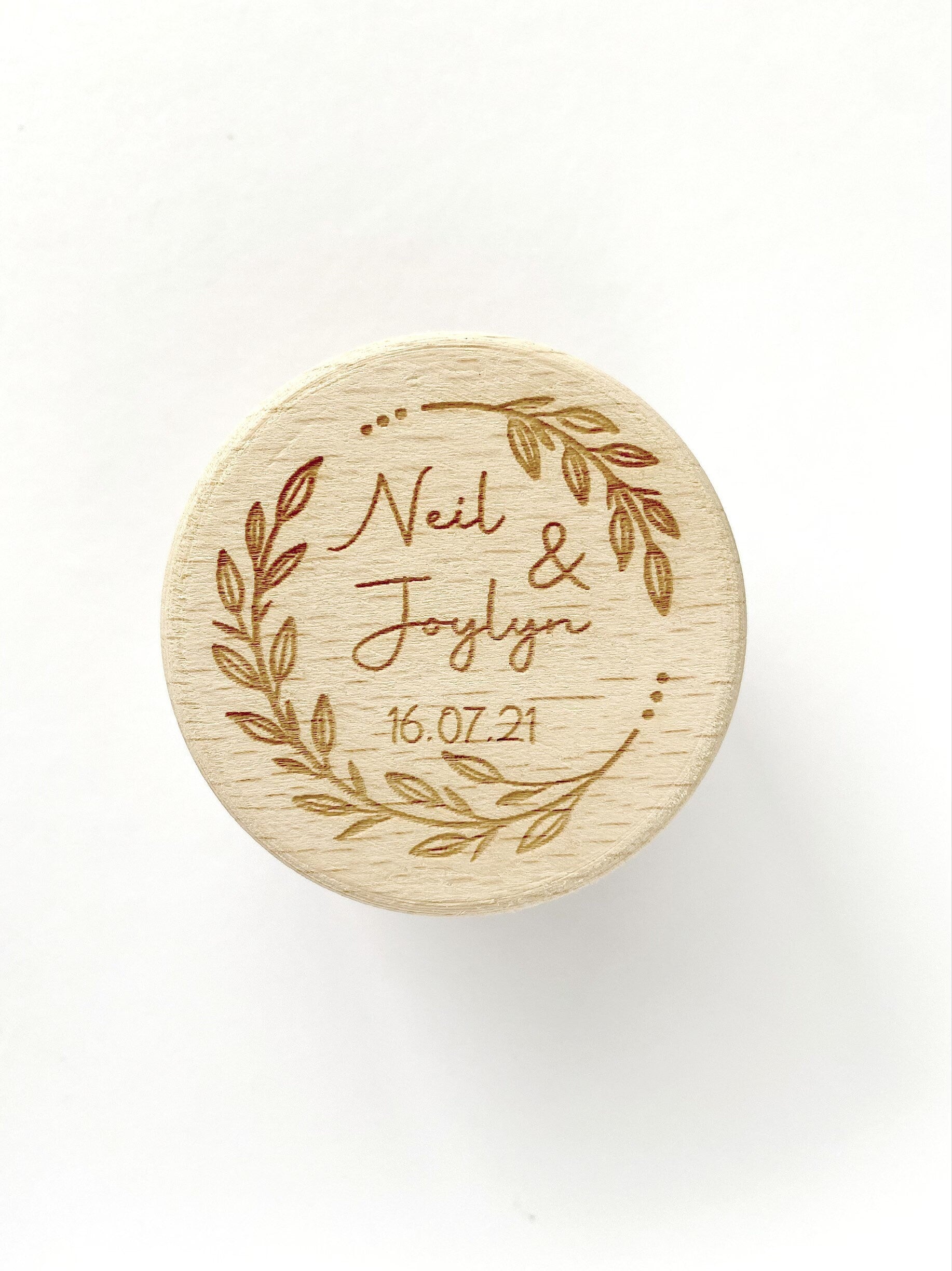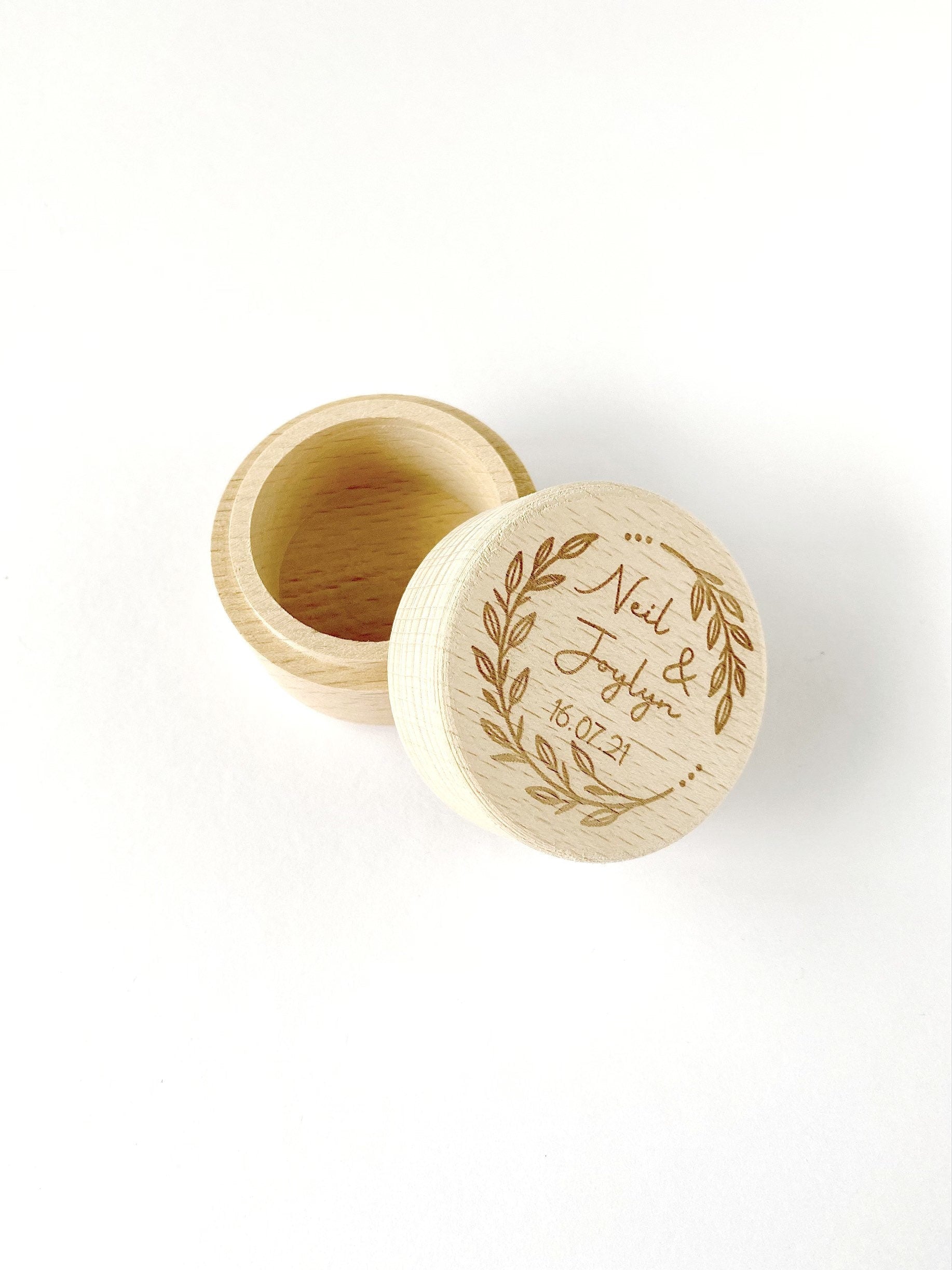 The box is made from raw beechwood and comes personalised with the engraving on top of the lid.